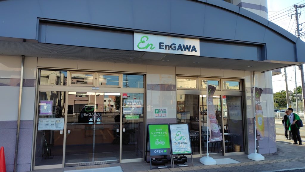 産業支援センターEnGAWA(エンガワ)は人とビジネスの縁をつくる場所、縁側のような場所、菊川(KIKUGAWA)のGAWAをとって名付けられました。