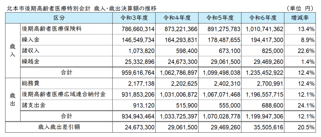 令和6年度に保険料が引き上げられたことに加え、高齢化の進行により被保険者数が増加したことにより、歳入・歳出とも約12%の増加となりました。