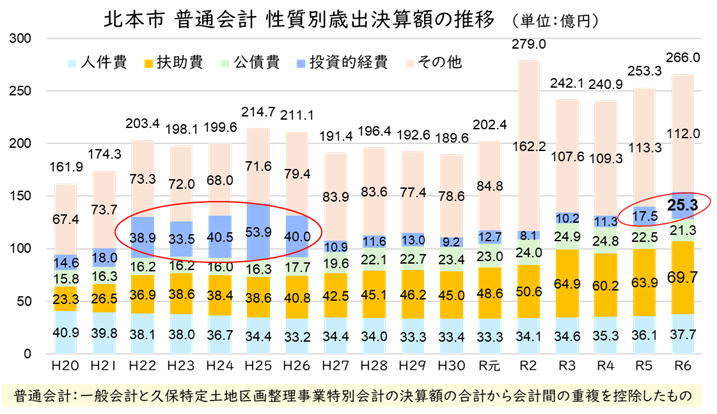 財政の悪化で道路、下水道、公共施設などインフラの整備(維持管理)が先送りにされないよう、投資的経費を平準化することが重要です。投資的事業を計画的に実施するよう、引き続き求めてまいります。