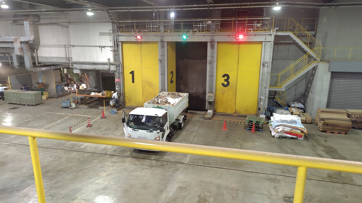 視察時は定期修繕中で先週まで2炉停止、現在も1炉を停止していることからピット内には未処理のごみが高く積みあがっていました。