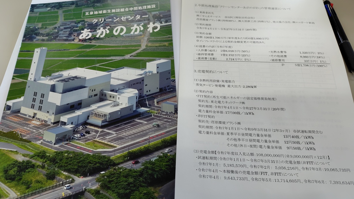 A.建設費は50.7億円、運営費は20年間で61億円。売電収入は運営するSPCに入る。物価高騰前でかなり安く整備できた上、交付金の裏には過疎債を100%充当(交付税措置率70%)しているので、自己負担は少なかった。